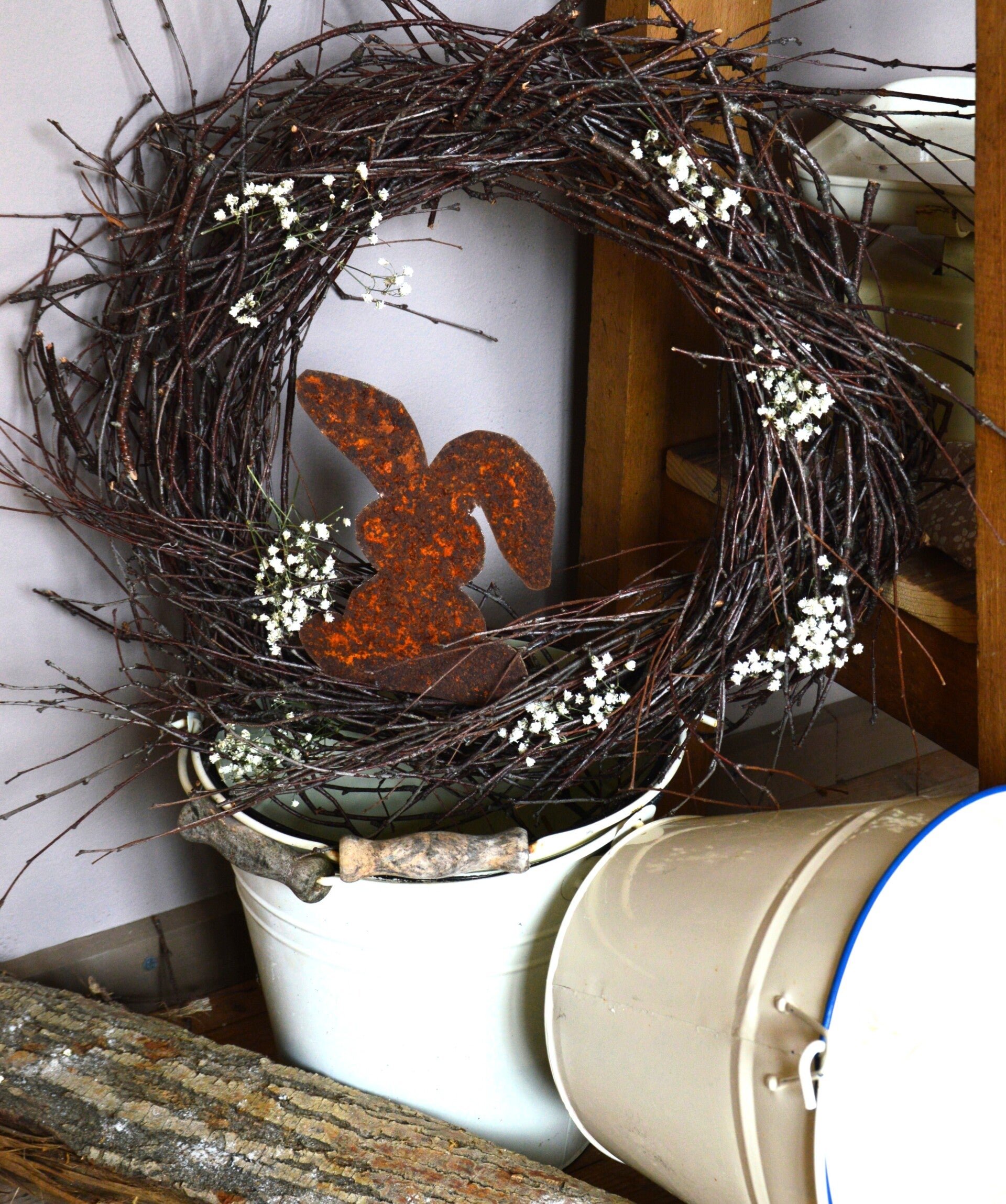 Ein Altes Mehlsieb, verziert mit Frühlingsblumen oder mit hübschen Pilzen begrüsst jeden Gast